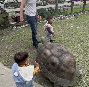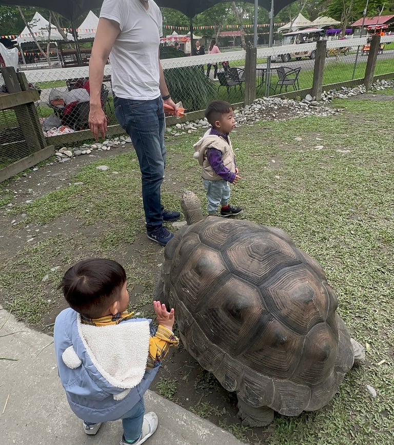 陸龜就是住在陸地上的烏龜,可以長到很大隻。我有跟Papa和Yuan拿胡蘿蔔餵過。